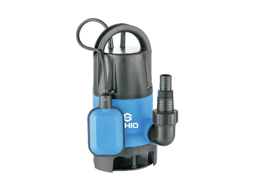 Submersible pump with plastic casing.
